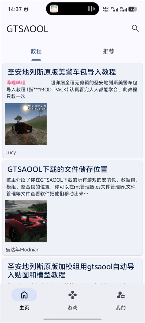 1、打开GTSAOOL官方版,在功能界面找到你想要导入模组的游戏。