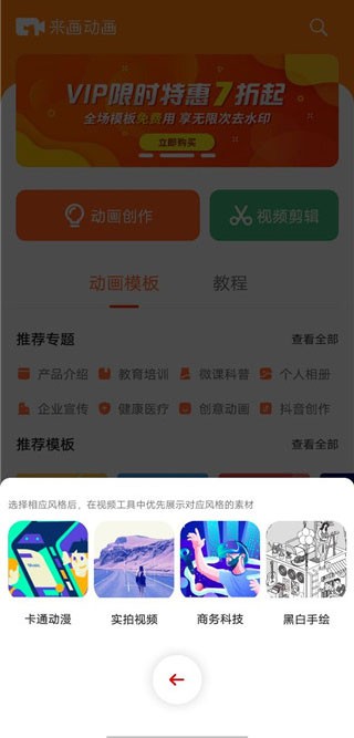3、选择相应风格,这一步选择后在编辑器里面会优先展示对应风格的素材,贴近你的创作需求