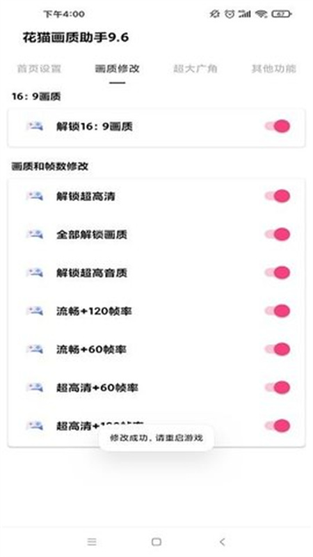 4、花猫画质助手游戏版拥有便利的一键修改画质的功能,能够帮助你达到想要的效果。