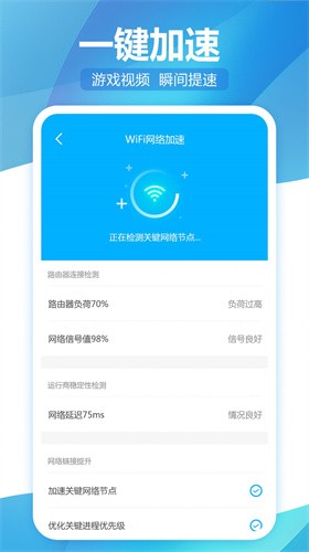 无线WiFi精灵是功能非常齐全的一款WiFi连接软件,这款软件拥有很多的优质WiFi功能可以进行体验,而且每个用户都可以通过这款软件进行提升WiFi的速度,通过提升WiFi速度来加快短视频、网页内容的加载速度,让用户的上网体验更舒适。
