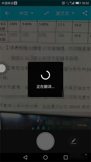我在这里举例中文翻译成波兰文,点击拍照,就会自动翻译