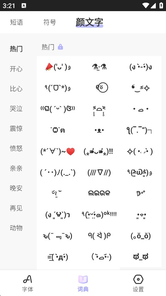 收录多种风格的颜文字与表情字符,例如可爱、搞怪、委屈与撒娇等类型,可在聊天中随时插入,让表达更生动鲜活。