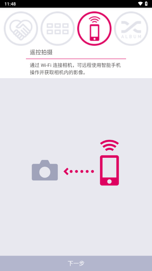 这将建立相机和智能手机之间的蓝牙无线连接。