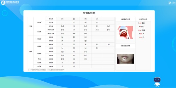 语音识别模块可检测用户的发音准确度,并依据发音规则表给出纠正建议。系统通过图文示例展示口型与音标,让用户在纠音过程中逐步提升口语基础,使发音练习与教材学习形成连贯训练链条。