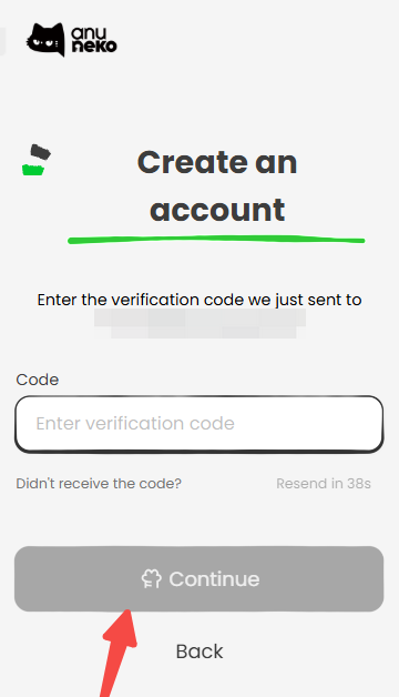5、打开邮箱,将验证码填写到框内即可,然后点击Continue按钮。