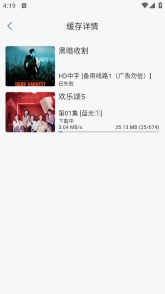 4、在查看下载列表中,可以看到已经下载的内容和下载的进度。