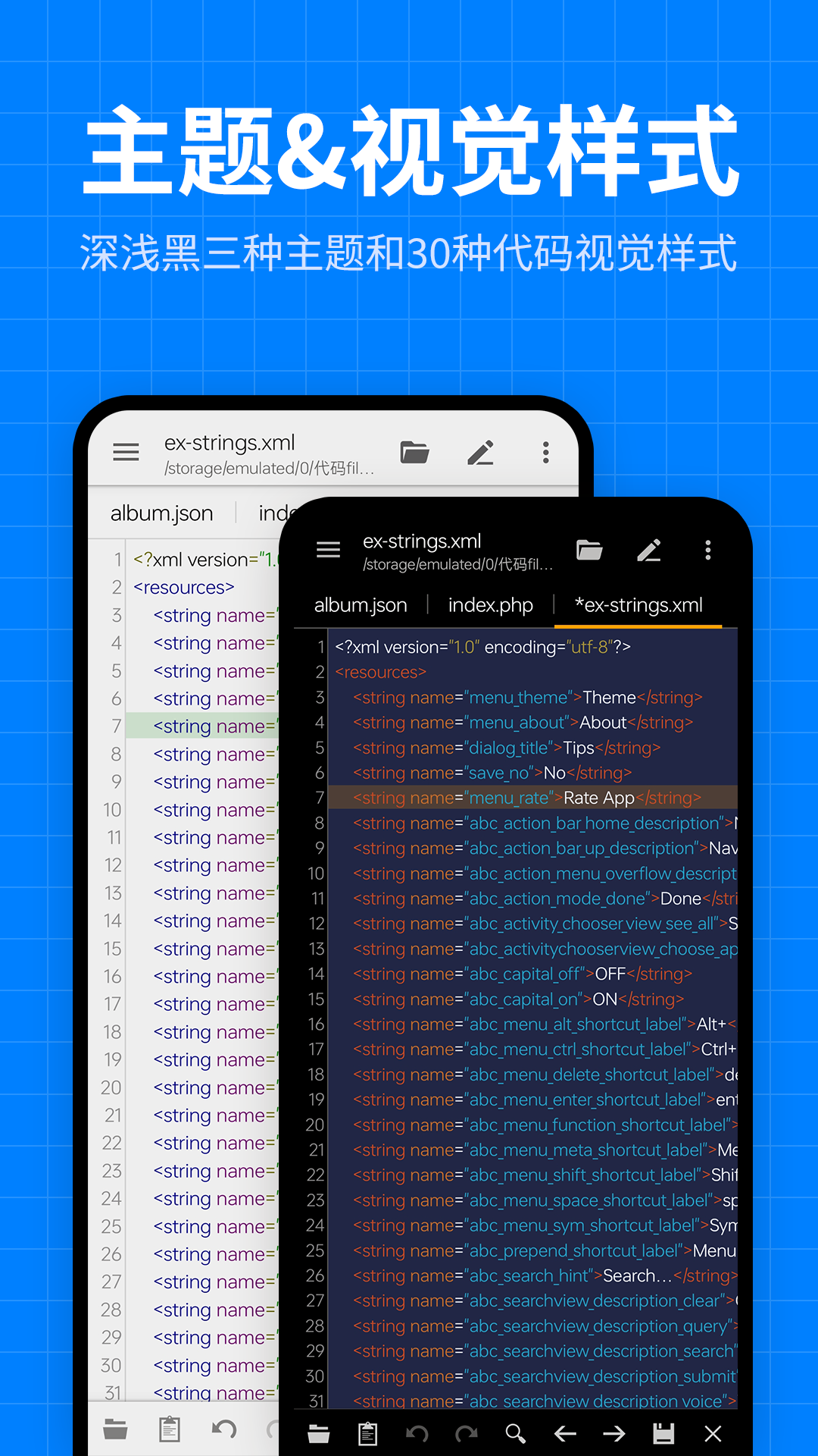 1.App提供丰富的主题背景,还有很多代码视觉样式