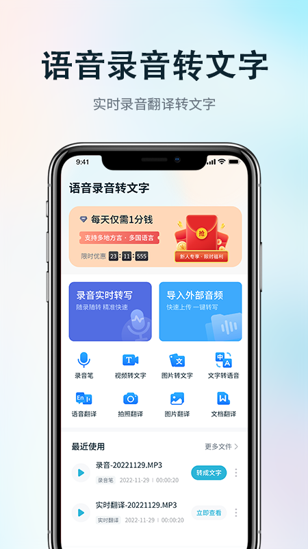 录音转写会议助手App是功能强大的实时录音转文字软件,App界面简洁、功能很全面,涵盖语音实时转录、声纹识别、一键成稿、语言翻译、AI会议纪要等功能,让大家轻松告别手动记录,随时随地在线享受高效的会议记录服务,快点下载吧!