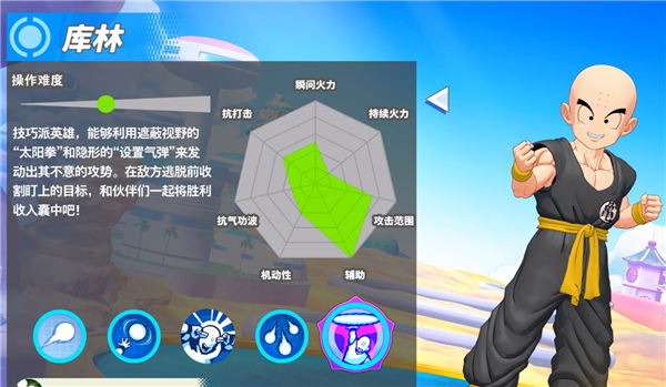战斗时和敌人维持一定空间,擅长中距离作战的英雄。战斗越激烈,斗志越昂扬!施展凶猛的如意棒突击,带上庞吉和古罗里奥一起大闹一场吧!