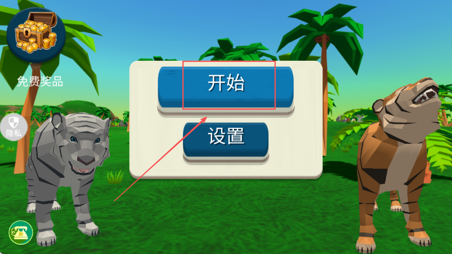 1、点击红框标注的开始按钮,进入老虎丛林冒险游戏,这是开启冒险旅程的第一步,需要仔细阅读界面提示信息。