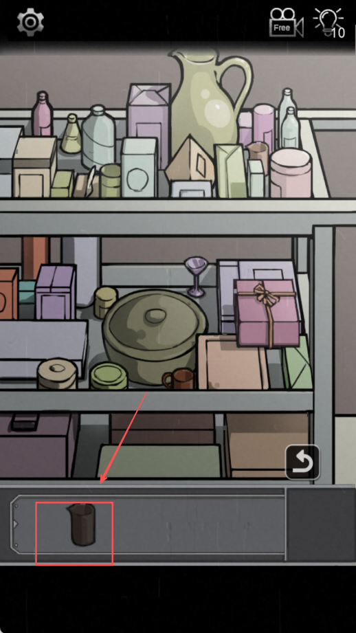 3、选择红框箭头指向的小桶,完成物品收集任务,积累资源,这些收集品将在后续关卡中发挥重要作用。