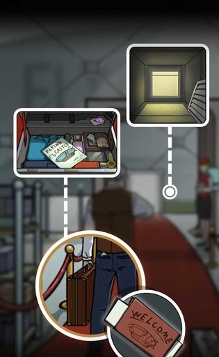 1、根据红框箭头提示,使用铁丝开启紫色手提箱,获取重要道具,这个操作需要掌握正确的力度和角度才能成功打开箱子。