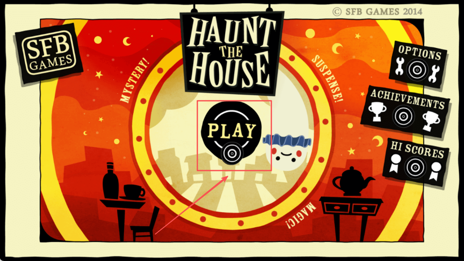 1、点击红色标记的PLAY按钮开始游戏,进入主菜单界面,这是开启幽灵冒险的第一步操作,需要仔细阅读界面提示信息。