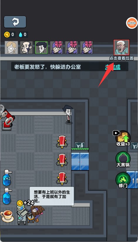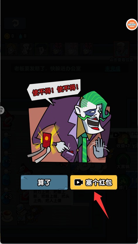 4、若不幸被老板发现,可点击"塞红包"按钮临时贿赂老板,获得额外藏匿时间。