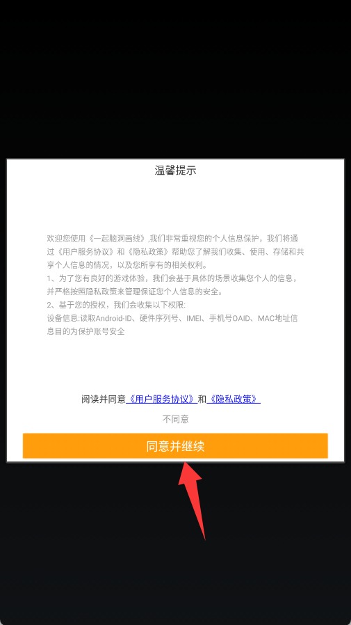 1、启动游戏后,请先仔细阅读并勾选同意用户协议与隐私政策,完成初始设置。