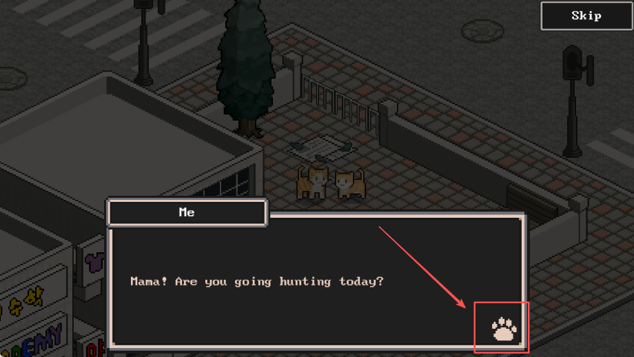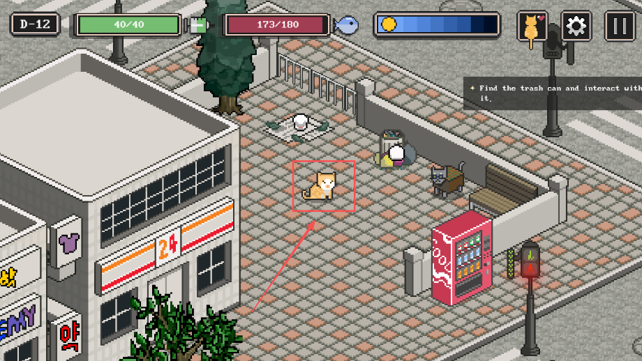 2、与人互动获取罐头,点击遇到的路人进行互动,通过对话了解他们的需求和故事,完成小任务或提供陪伴,获得食物奖励和好感度提升。