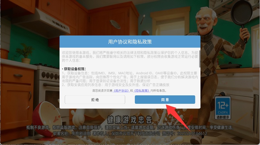 1、启动游戏后,请先仔细阅读并勾选同意用户协议与隐私政策,完成初始设置。