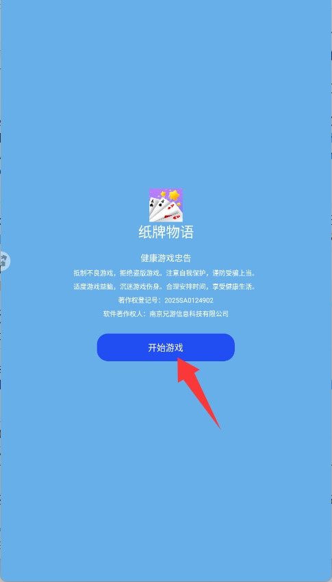 1、启动游戏后,在主界面点击"开始挑战"按钮,即可准备进入纸牌排列环节。