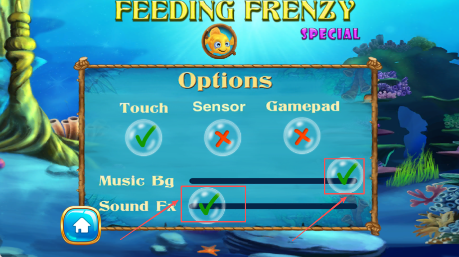 4、开始游戏控制鱼类,完成前期设置后进入游戏主界面,选择游戏模式开始控制小鱼在海洋中冒险生存。