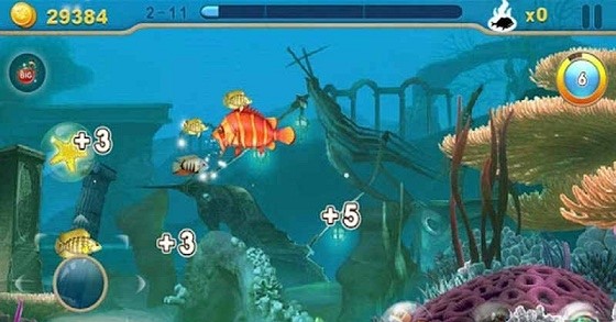 2、吞食小鱼成长壮大,瞄准比自己体型小的鱼类进行捕食,每成功吞食一条鱼就会获得成长值,逐渐增大体型提升生存能力。