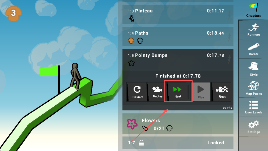3、成功到达终点完成挑战,在自制地图中顺利通关,验证关卡设计的可玩性,享受创作成果带来的成就感。