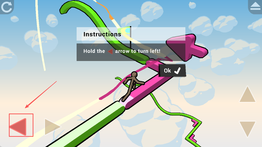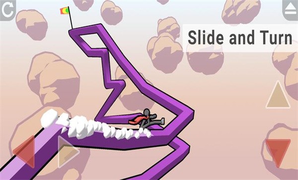 2、长按屏幕通过左转弯道,掌握转弯时机和按键时长,保持角色平衡不坠落,在复杂弯道中保持稳定前进不失误。