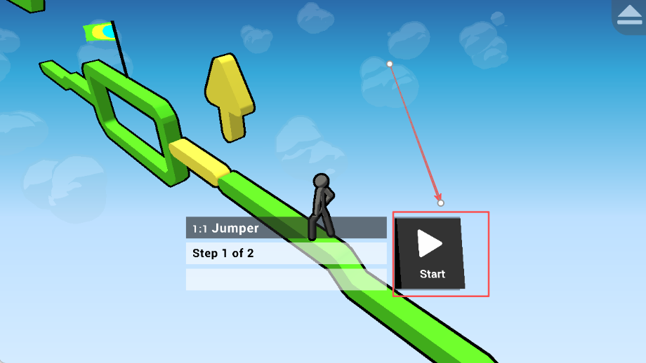 1、点击开始按钮进入游戏,这是开启跑酷之旅的第一步,需要熟悉界面布局和基本操作方式,为后续的高空挑战做好充分准备和练习。