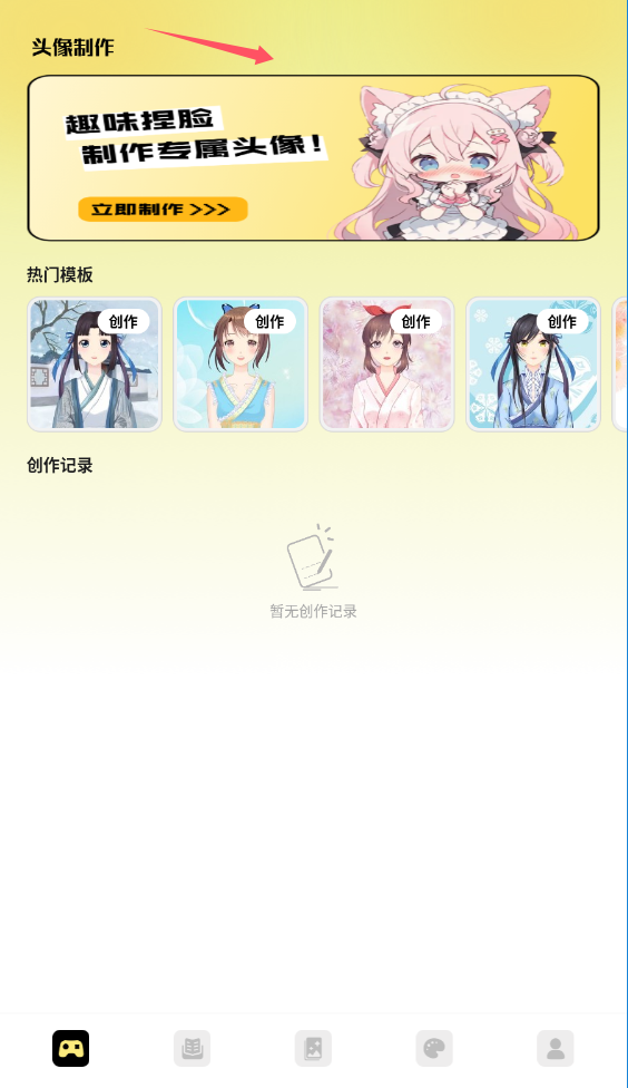 3、独立的头像制作模块,结合热门模板与步骤记录功能,让个性化头像设计变得简单高效,同时保留创作过程中的每个细节。