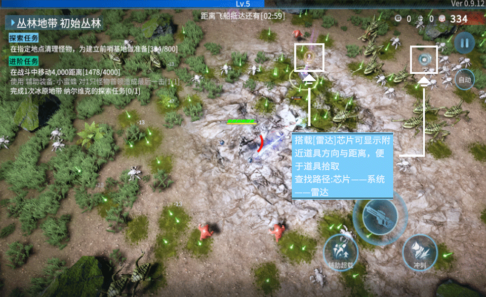 搭载[雷达]芯片可显示附近道具方向与距离,便于道具拾取