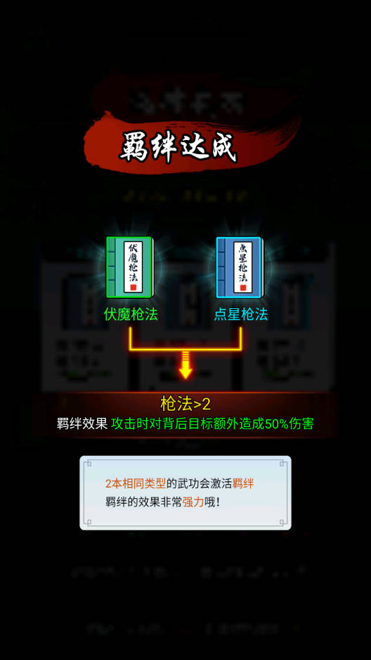 4、学习两个同类型的武功可能会激活特殊羁绊,不同武功的组合效果各异,记得先查看。