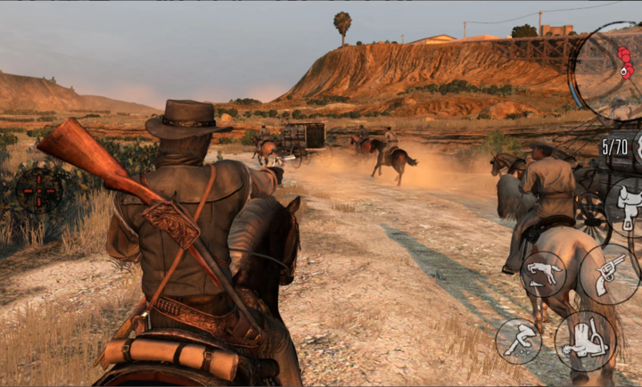 荒野大镖客救赎高画质菜单完美版手游是一款以《荒野大镖客:救赎》为基础,移植至移动端并经过优化的高画质版本,背景设定在虚构的美国西南部和墨西哥,采用开放世界玩法设计,玩家将扮演前帮派成员约翰·马斯顿,自由穿梭于新奥斯汀、西伊丽莎白、墨西哥北部三大开放区域,展开高自由度的西部生存体验,为营救被联邦探员挟持的家人,踏上追捕旧日同伙的救赎之路。