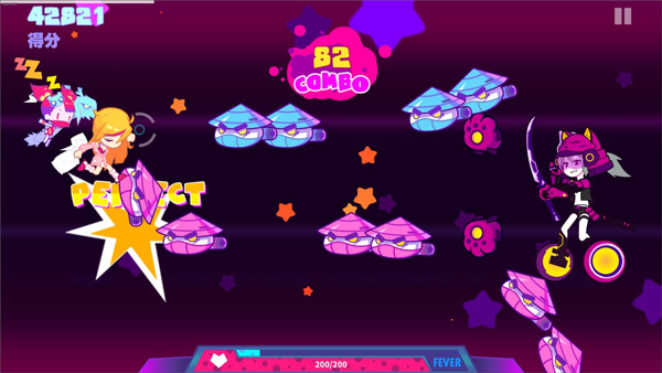 2、游戏的音乐曲目丰富多样,无论你喜欢哪种音乐风格,都能在Muse Dash中找到满足。通过与音乐的互动,玩家能够充分感受到音乐的魅力和动感。