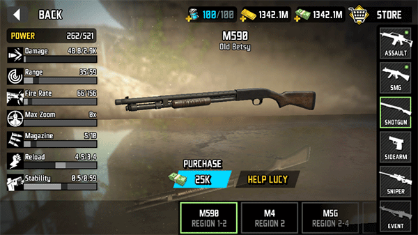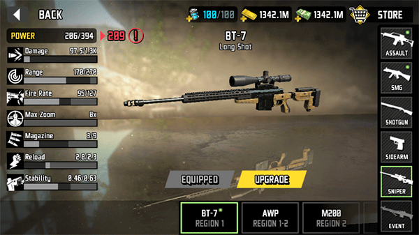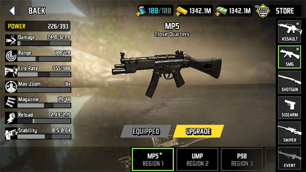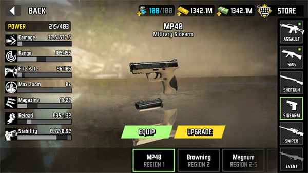 游戏中有多种枪械武器,玩家需要使用金钱来升级武器获得更强战力