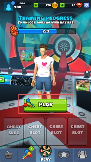 1、打开飞镖俱乐部游戏后,点击【PLAY】开始,随后即可开始挑战。