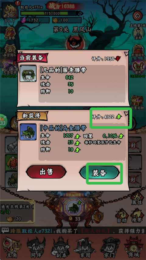 3、装备替换和出售机制灵活,强化路径多样。