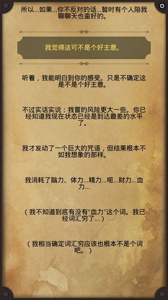 生命线2是一款非常有趣的文字冒险游戏,是生命线系列的第二部作品,英文名叫做Lifeline:Bloodline,翻译为生命线2血缘,这一次故事的舞台从太空来到了一个全新的魔法世界,你回应了一个会魔法的年轻女子Arika的召唤,她与她的弟弟曾因为魔法而失散,失控的混沌魔法在多年前卷走了她年幼的弟弟,而她一直在通过自己的努力寻回自己的至亲,因为机缘巧合,她与你产生了联系,你将帮助她找回她的弟弟,令她们终得团圆的结局。游戏的玩法延续了前作的信息沟通,文字呈现风格,剧情依然出彩,但是换成了魔法风味的配方,感兴趣的话就赶快下载试试吧!
