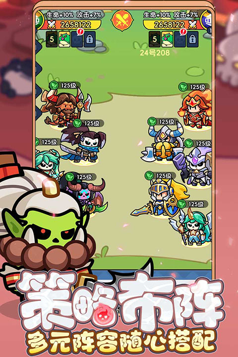 勇者防御是一款非常好玩的放置卡牌挂机游戏,游戏采用了卡通的美术风格,将策略、塔防、卡牌等多种玩法融合,带给玩家全新的游戏体验。在游戏中玩家将会扮演一名强大的亡灵领袖,你将在这里组建不死大军,召唤骷髅战士、腐化精灵射手、狂战兽人尸傀等亡灵部队,抵御一波又一波的敌人入侵和冲击。喜欢的玩家千万不要错过。