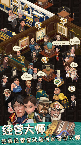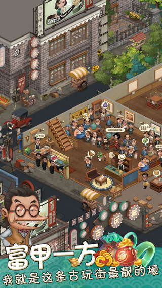 我在民国淘古玩是一款复古的模拟经营游戏,游戏以民国时期为背景,在这里玩家将经营一家古玩店,你需要去鉴别很多的古玩宝物,然后以低价淘到一些稀有的宝贝,通过高价卖出去赚取差价,获取丰厚的利润。同时,你还可以自己去开一个展览馆的,招募员工,增加店铺设施,吸引很多的游客前来。还等什么?快来成为这条古董街上的最强大师吧!