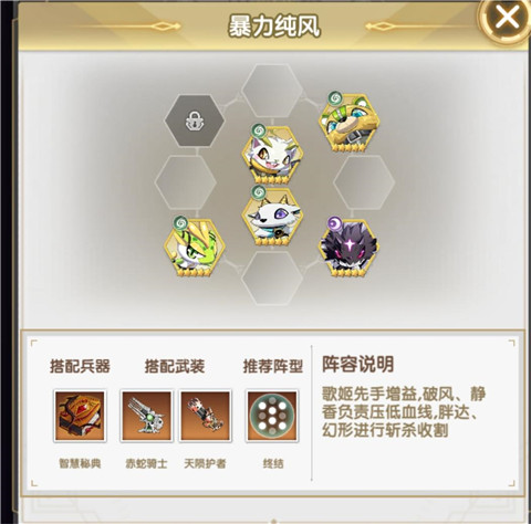 这套阵容集输出、防御、控制于一体,容易收集,堪称前期通关的不二之选 。