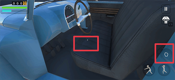 1、进入游戏后先将汽车上的所有零件装备在车上,点击手掌按钮拾取,