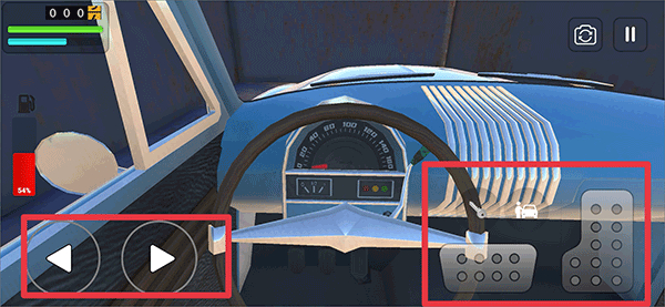 5、上车后就可以驾驶车辆行驶在道路上啦,左边按键控制方向,右边分别为倒车和前进,